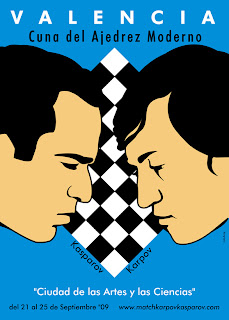 22.Nb5 Nxb5 23.axb5 Nd4 24.Ne6 Black wins 0–1 Click here to replay the game. Kasparov (2812) - Karpov (2619) [D31]Valencia match (2), 22.09.2009 1.d4